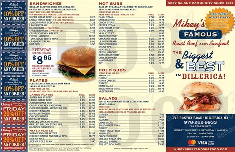 Mikey's Famous Roast Beef & Seafood menu in Billerica, Massachusetts, USA from www.sirved.com