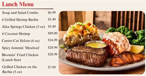 Sunday through thursday and 11 p.m. One of the great aspects about this menu is the outback lunch specials. The home of juicy steaks, spirited drinks and aussie hospitality.